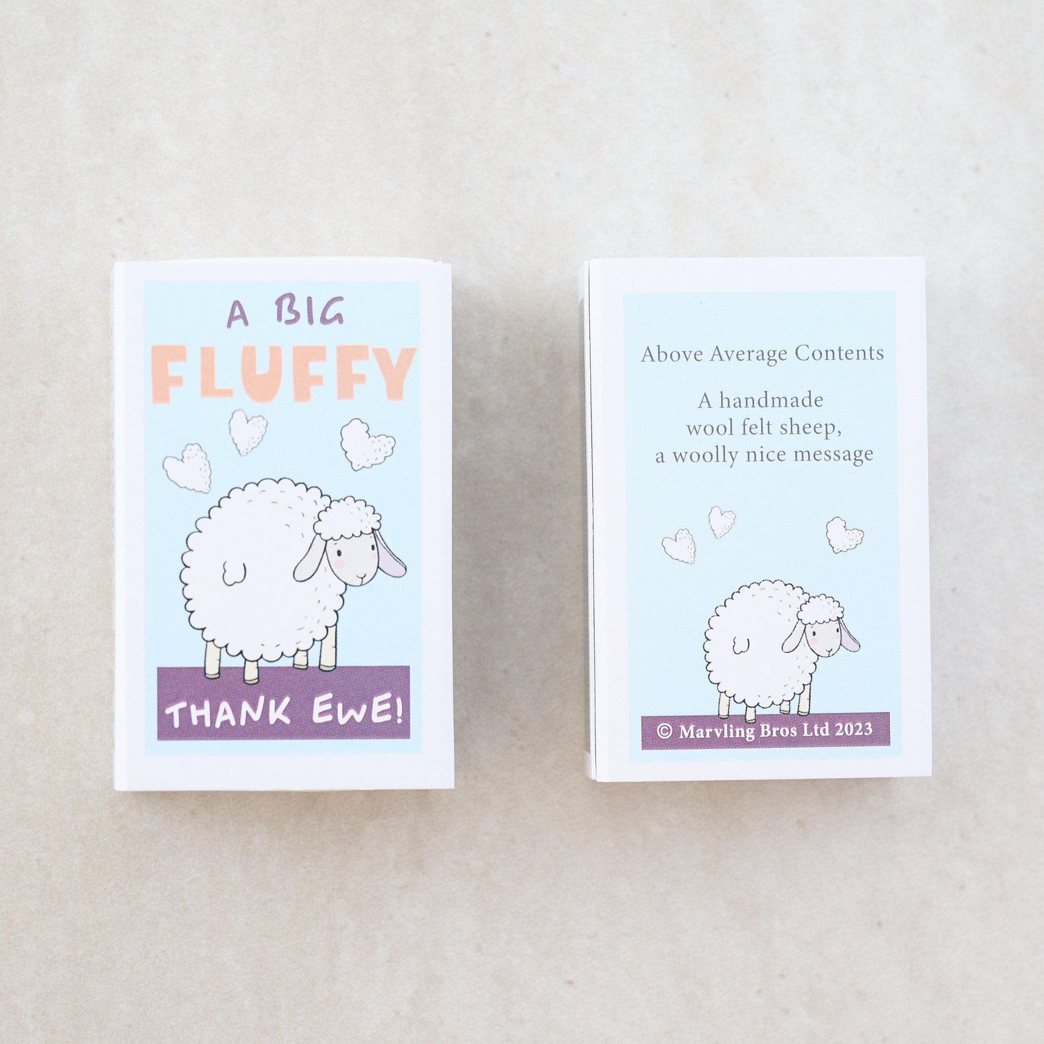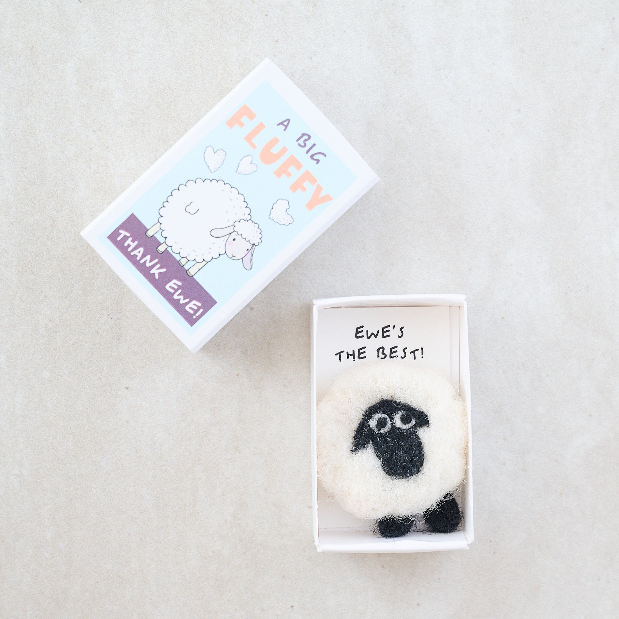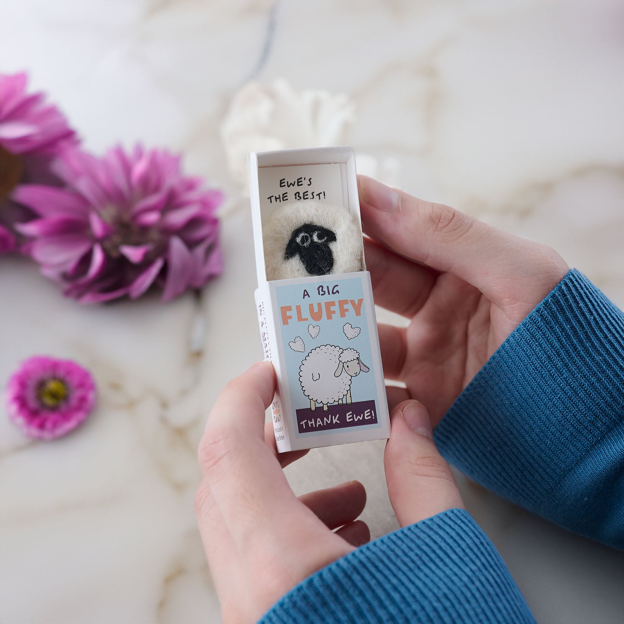 A Big Fluffy Thank Ewe Wool Felt Sheep In A Matchbox