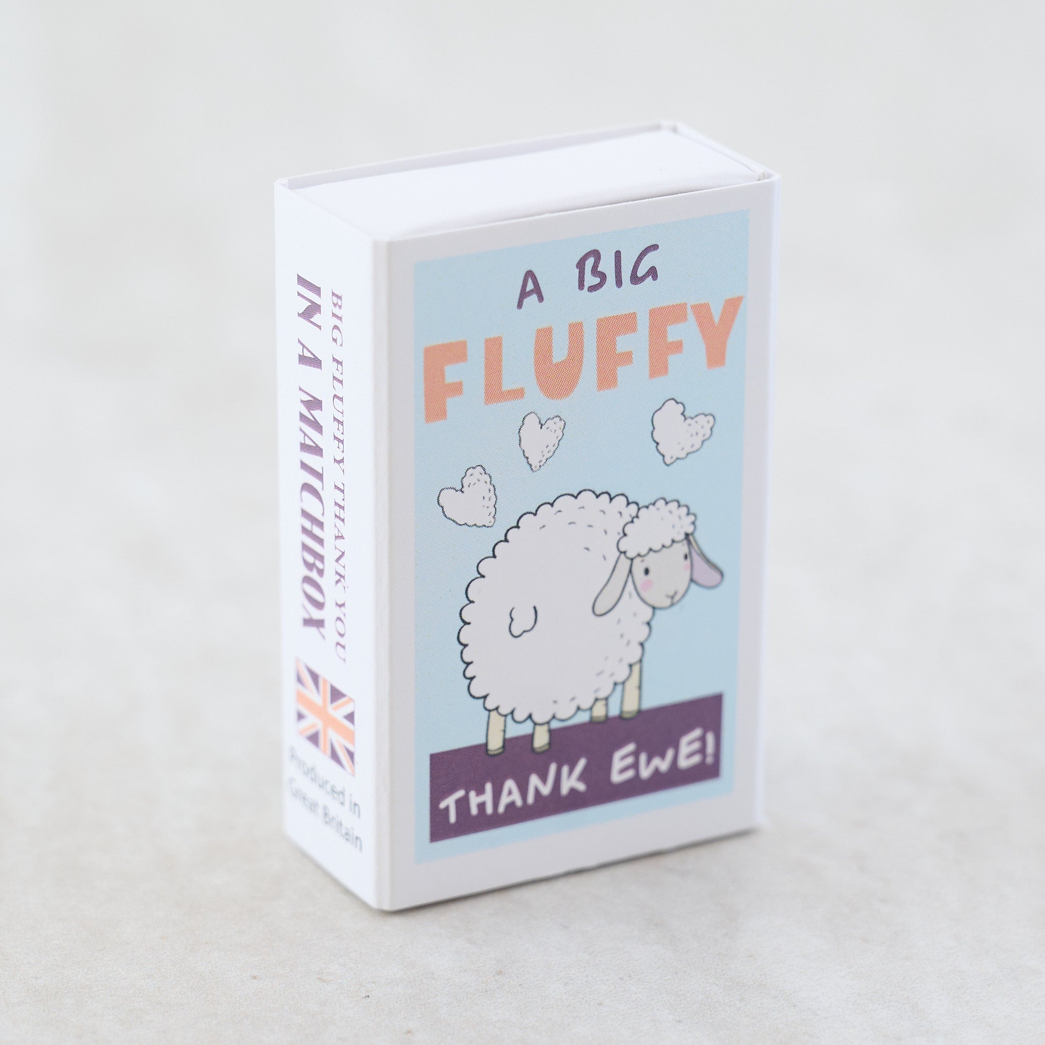 This delightful matchbox, with the message 'A Big Fluffy Thank Ewe', is the perfect way to express gratitude and appreciation for someone who's made a difference in your life. Open the matchbox to reveal a lovingly handmade wool felt sheep, along with the sincere card message 'Ewe's The Best!' This heart warming gift is sure to put a sheepish smile on their face!