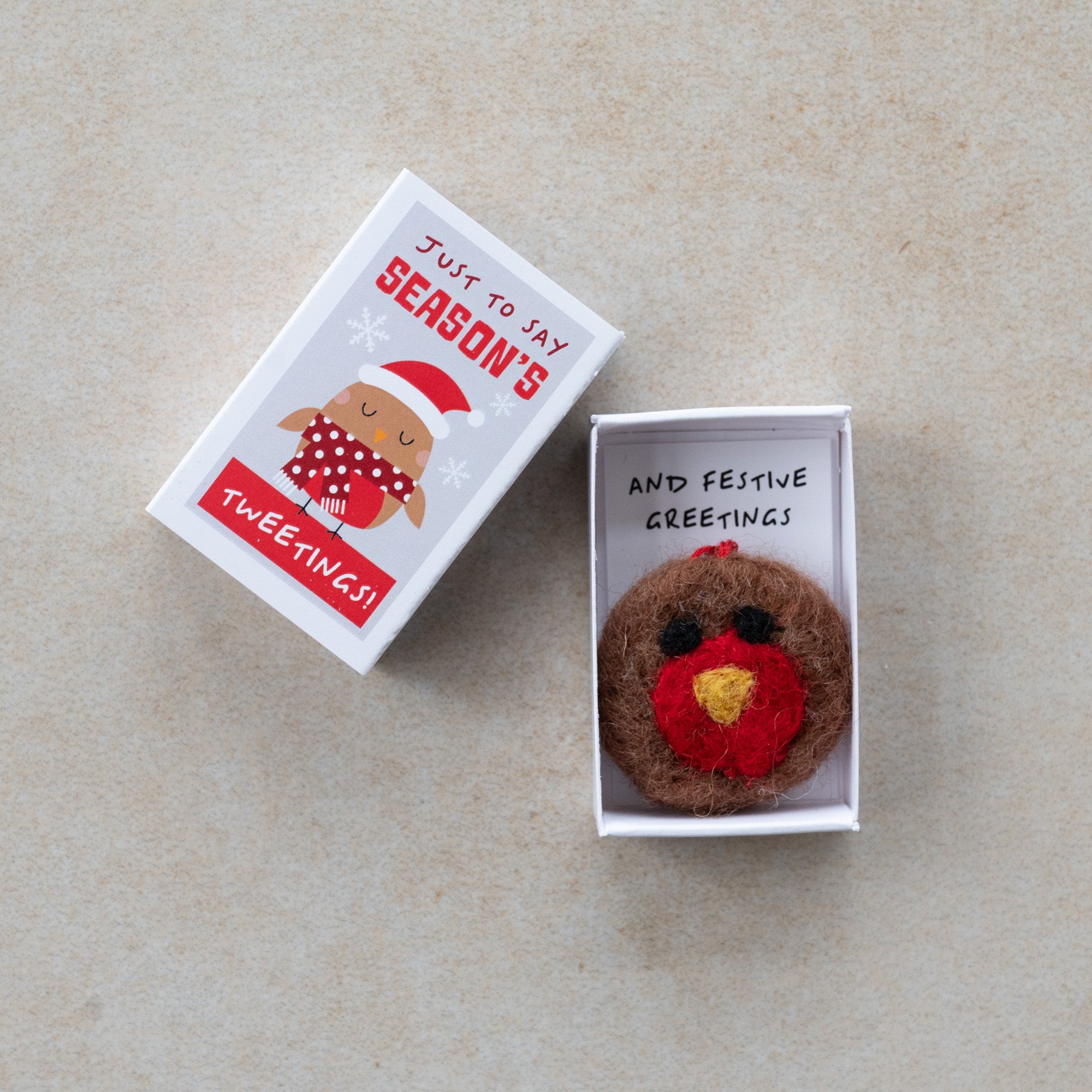 Christmas Tweetings Wool Felt Robin In A Matchbox
